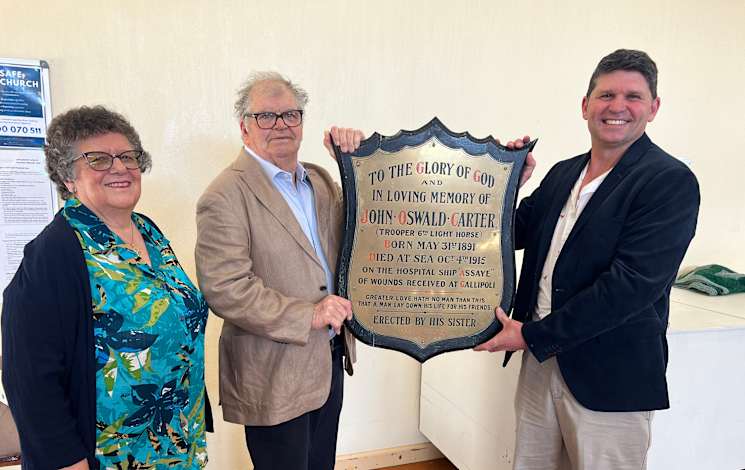 A memorial plaque for a local WW1 Veteran, re-discovered in storage at St John's Anglican Church Young, was returned to family members during the recent 160th Anniversary service at St John’s.